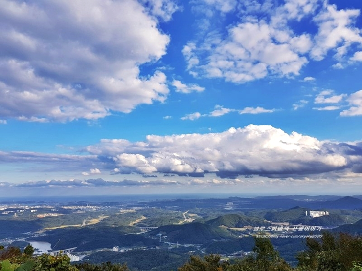 울산 바다가 한눈에 펼쳐지는 울산 문수산에서의 조망입니다.
