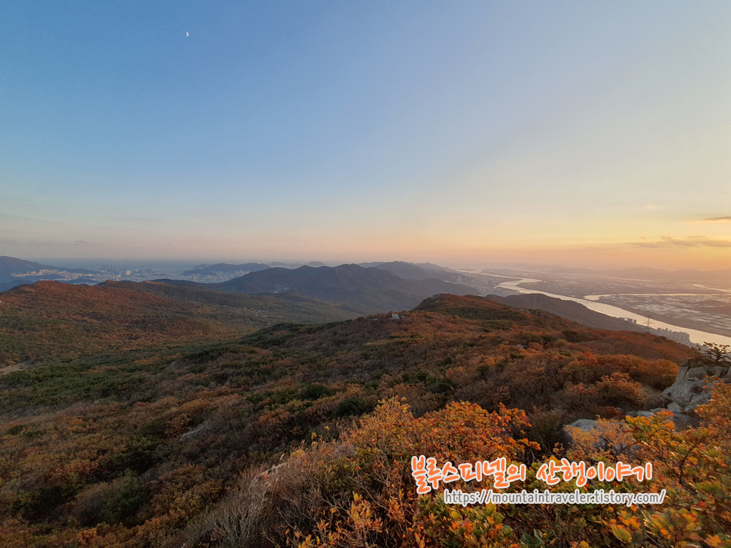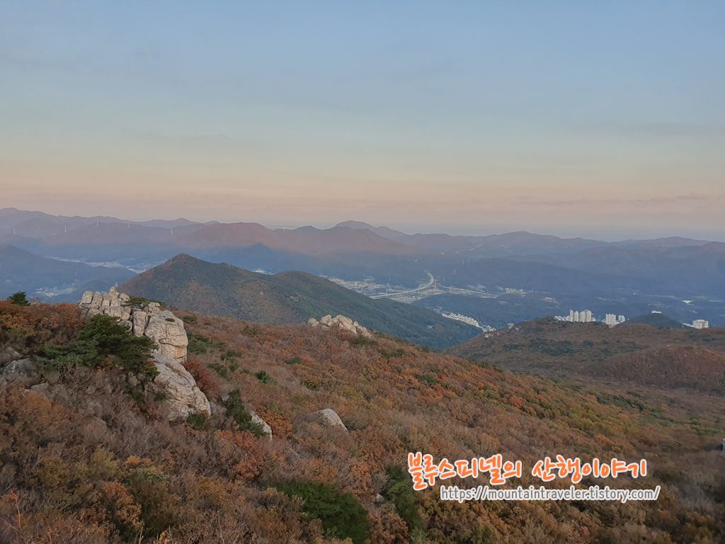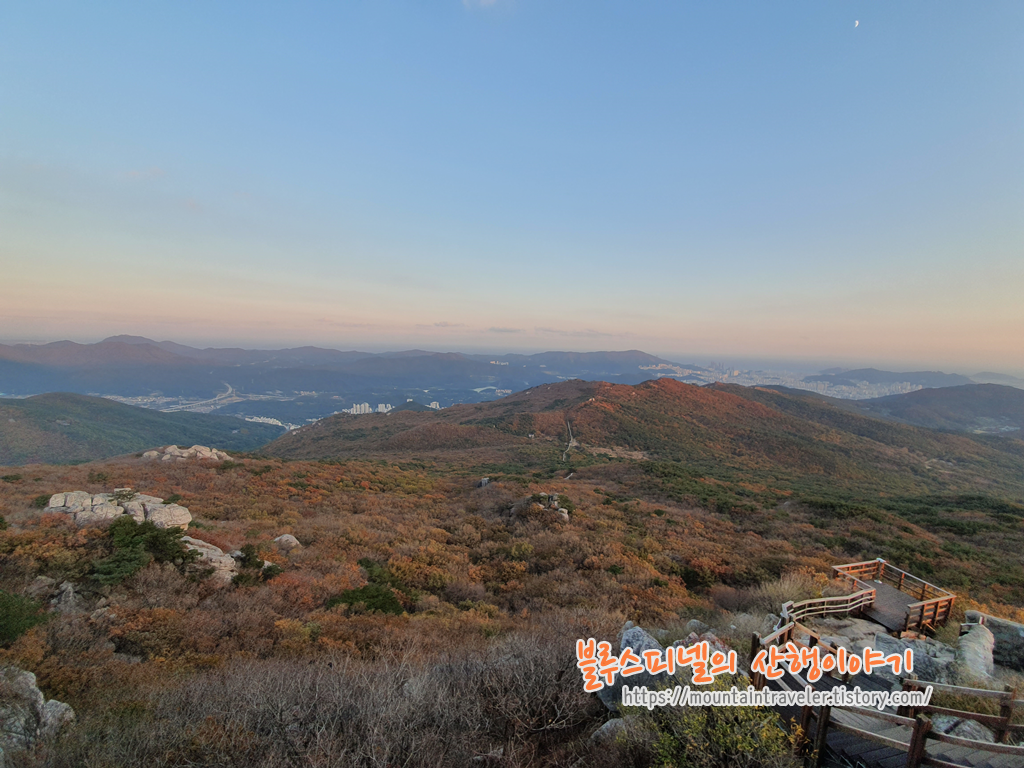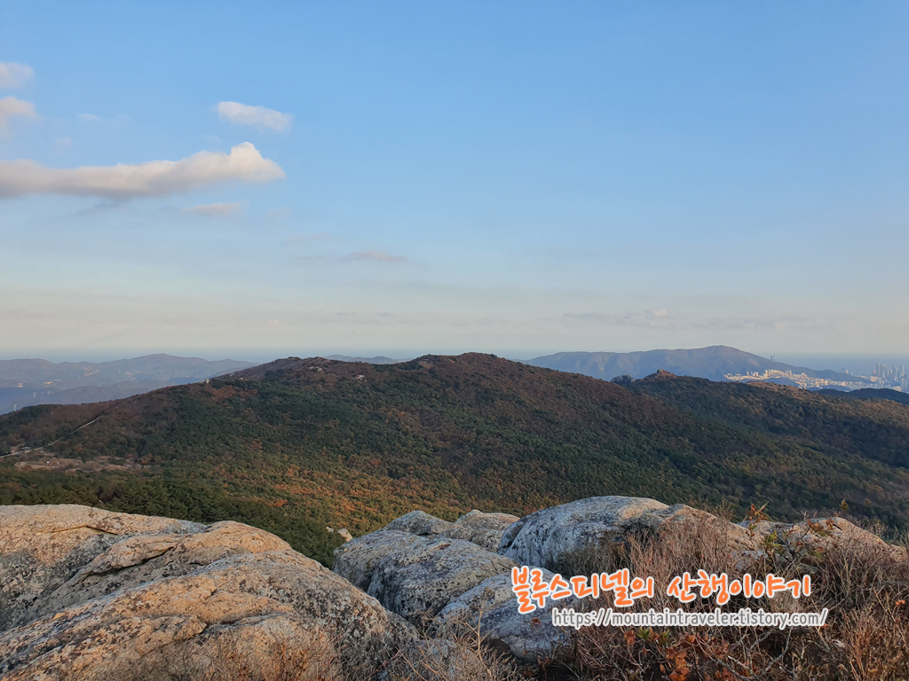 상계봉, 파리봉, 부산 백양산, 승학산이 조망되네요.