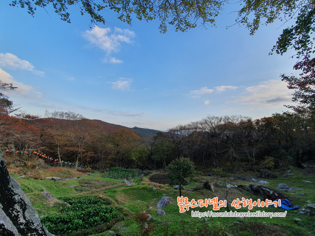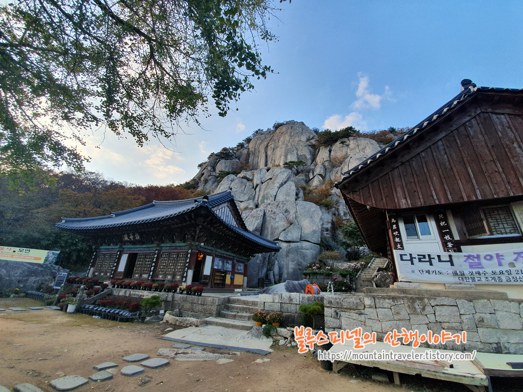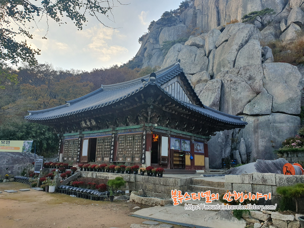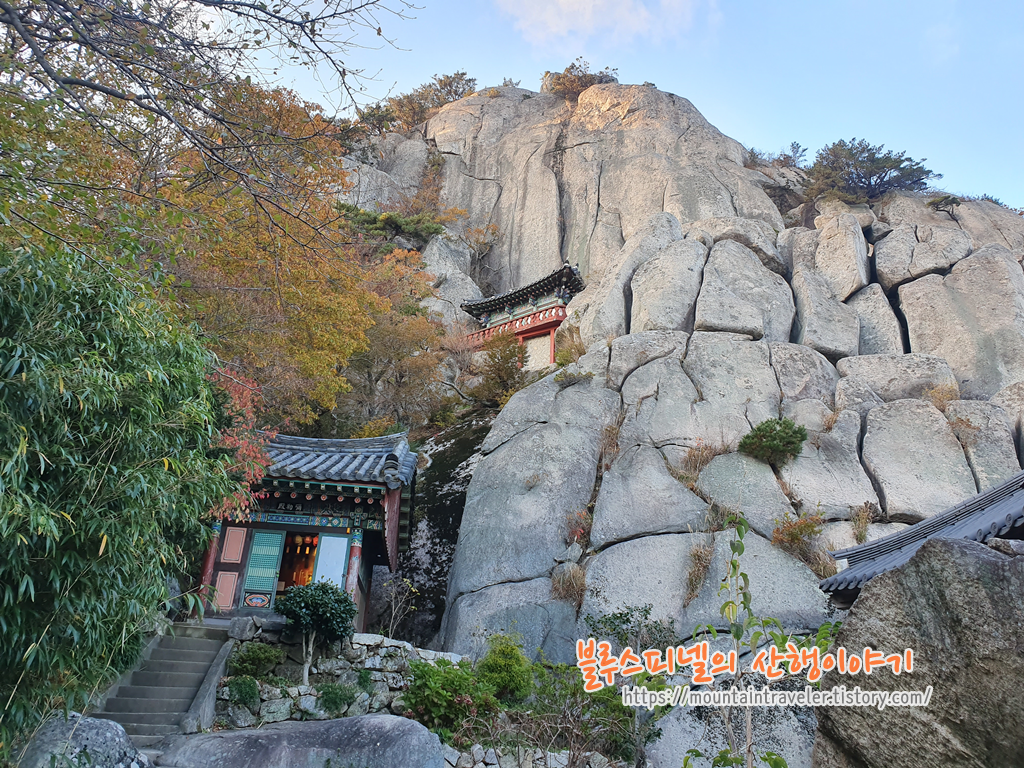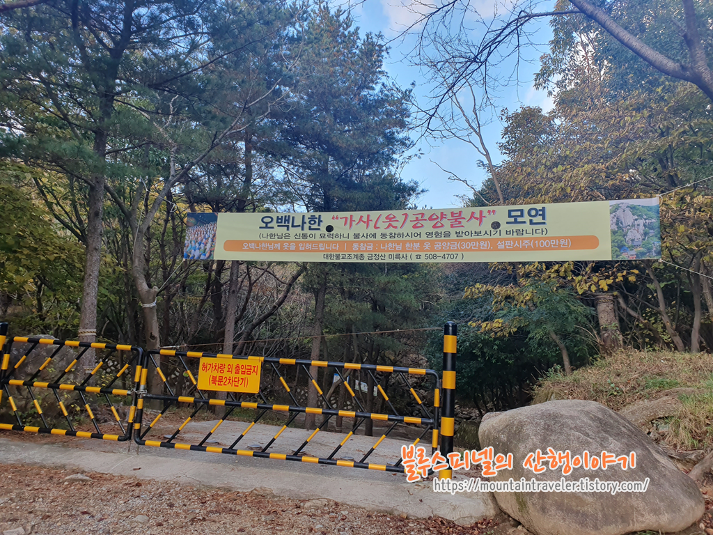5분~10분 정도 길을 따라 오르면 미륵암 갈림길을 만나게 됩니다. 이후 등산로를 따라 10분~15분 정도 고도를 올리면 미륵사를 만나게 되고요.
