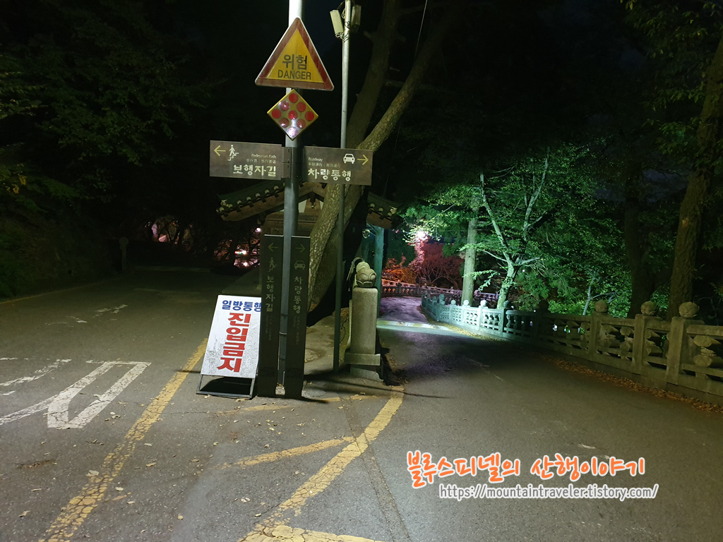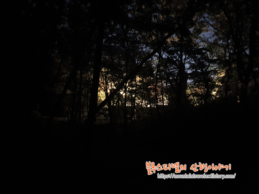 범어사까지 이어지는 등산로는 비교적 넓은 완만한 등산로입니다. 이정표를 진행하고 발걸음을 한다면 문제가 없을 듯싶네요. 어두운 밤에도 한분, 두 분 올라오시네요.