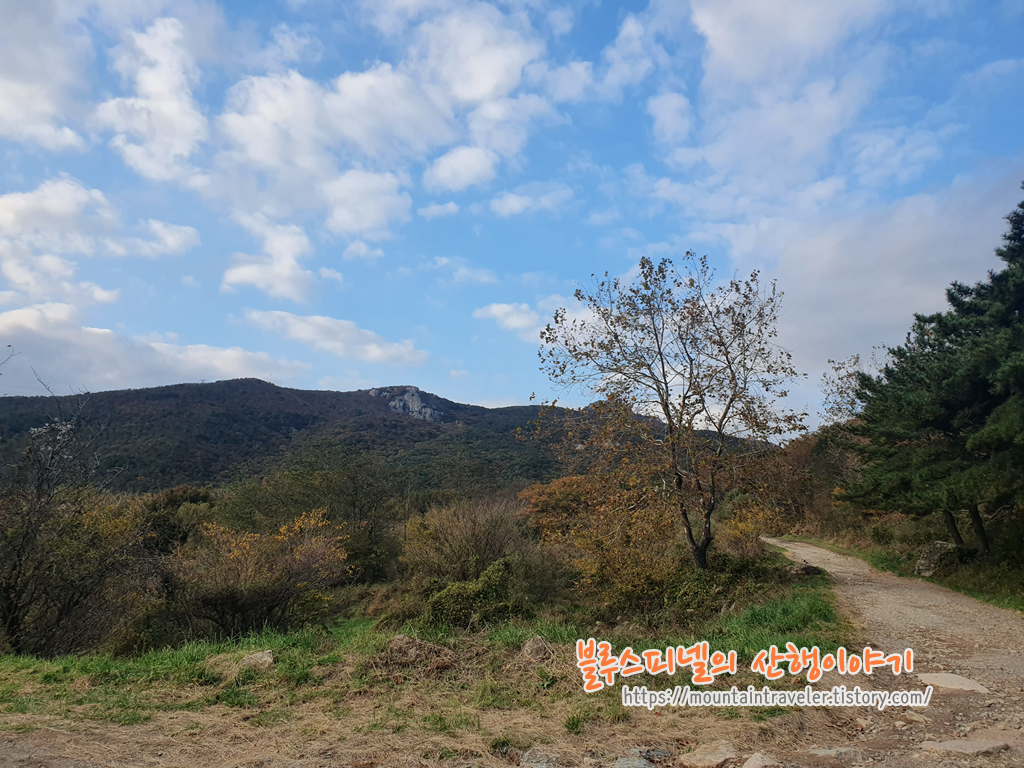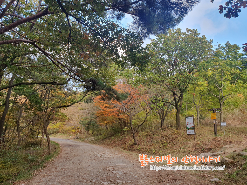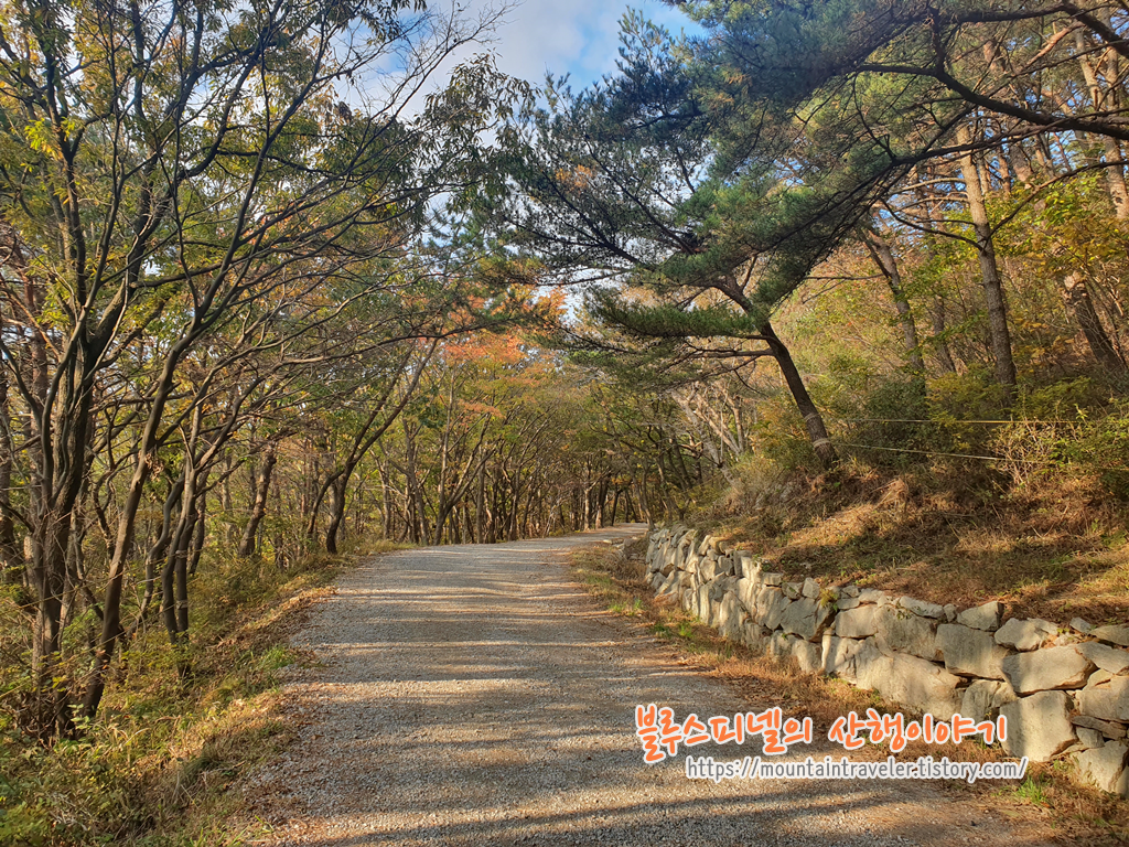 북문 1차단기를 지나면 걷기 좋은 임도길이 이어집니다. 간혹 차량들이 지나가면 흙먼지로 인하여 잠시 입과 코를 막아야 하지만요.