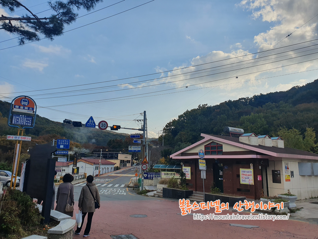 입구 매표소를 지나면 좌측으로 버스정류장이 위치하고 있습니다. 90번 버스를 타면 노포동 고속버스터미널로 발걸음 할 수도 있고요. 저는 지하철을 타러 범어사역으로 발걸음을 합니다. 넉넉하게 휴식시간을 포함하여 3시간이면 충분한 코스입니다.